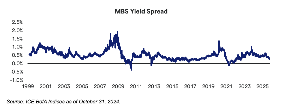 As of end of October 2025, Agency MBS accounted for approximately 24% of the Bloomberg U.S. Aggregate Index.